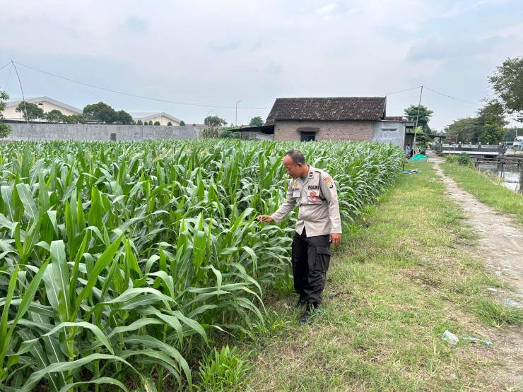 POLRESTA SIDOARJO - Dukung Program Pekarangan Pangan Bergizi (P2B) yang diinisiasi Polresta Sidoarjo, Bhabinkamtibmas Desa Simpang Polsek Prambon, Aipda Dedik F, turun langsung ke lapangan untuk meninjau perkembangan lahan pertanian milik petani di Desa Simpang, Kecamatan Prambon, Kabupaten Sidoarjo, Senin (23/6/2025).