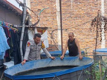 Bhabinkamtibmas Banjarsari Polsek Buduran Dukung Peternak Lele, Dorong Ketahanan Pangan
