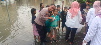 Kapolsek Krian Peduli Warga Terdampak Banjir di Desa Barengkrajan