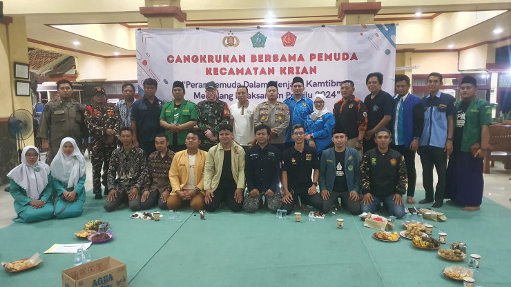 Upaya menjaga kondusifitas kamtibmas jelang pergantian tahun dan menghadapi Pemilihan Umum (Pemilu) 2024, dilakukan Polsek Krian dengan mengadakan cangkrukan kamtibmas bersama pemuda di Pendopo Kantor Kecamatan Krian, Rabu (27/12/2023) malam.