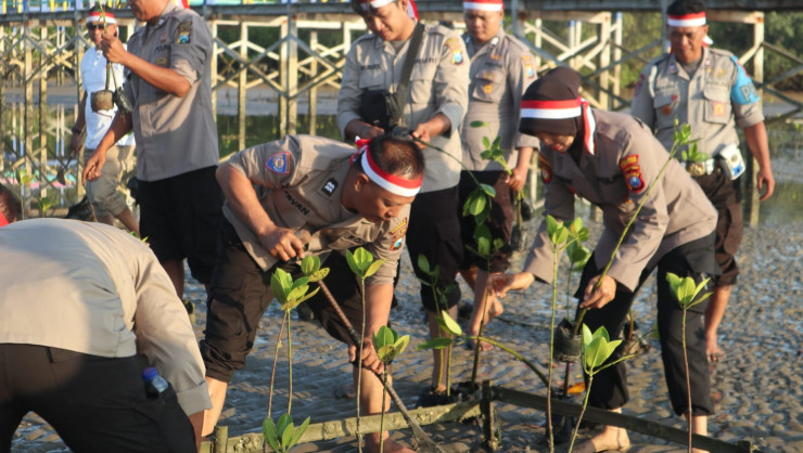 "Penanaman ratusan pohon mangrove secara bersama-sama ini guna melestarikan lingkungan hidup dan dalam rangka memperingati Hari Kemerdekaan RI ke-78," kata AKP Nining Dyah saat ditemui di lokasi.