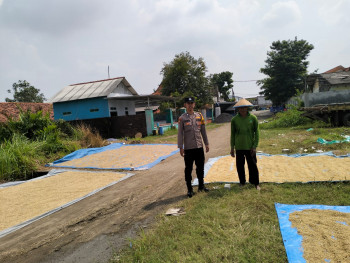Bhabinkamtibmas Dampingi dan Motivasi Petani Saat Jemur Gabah di Desa Krembangan