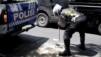 Polantas Polres Gresik Tambal Jalan Berlubang Demi Keselamatan Pengendara